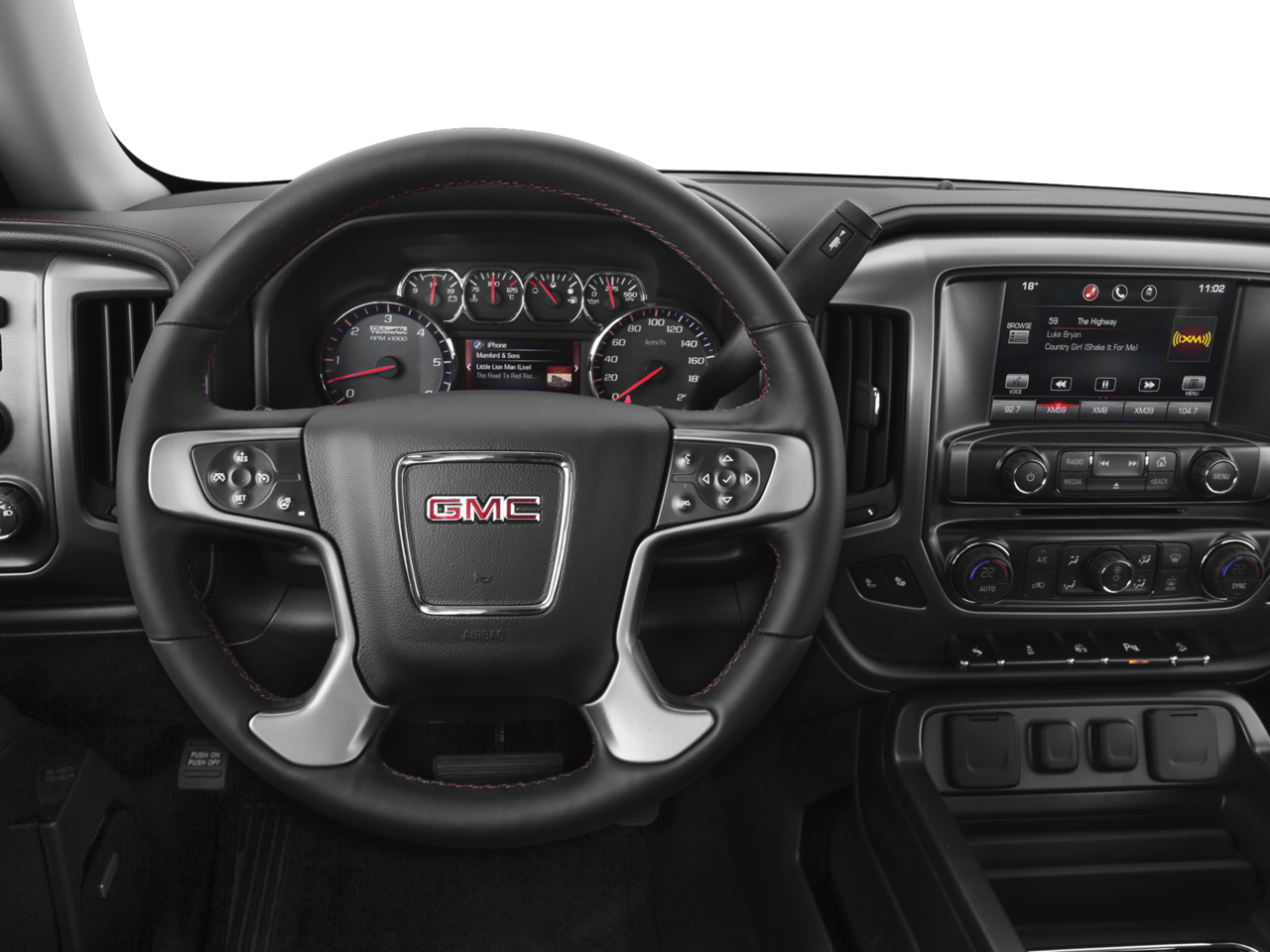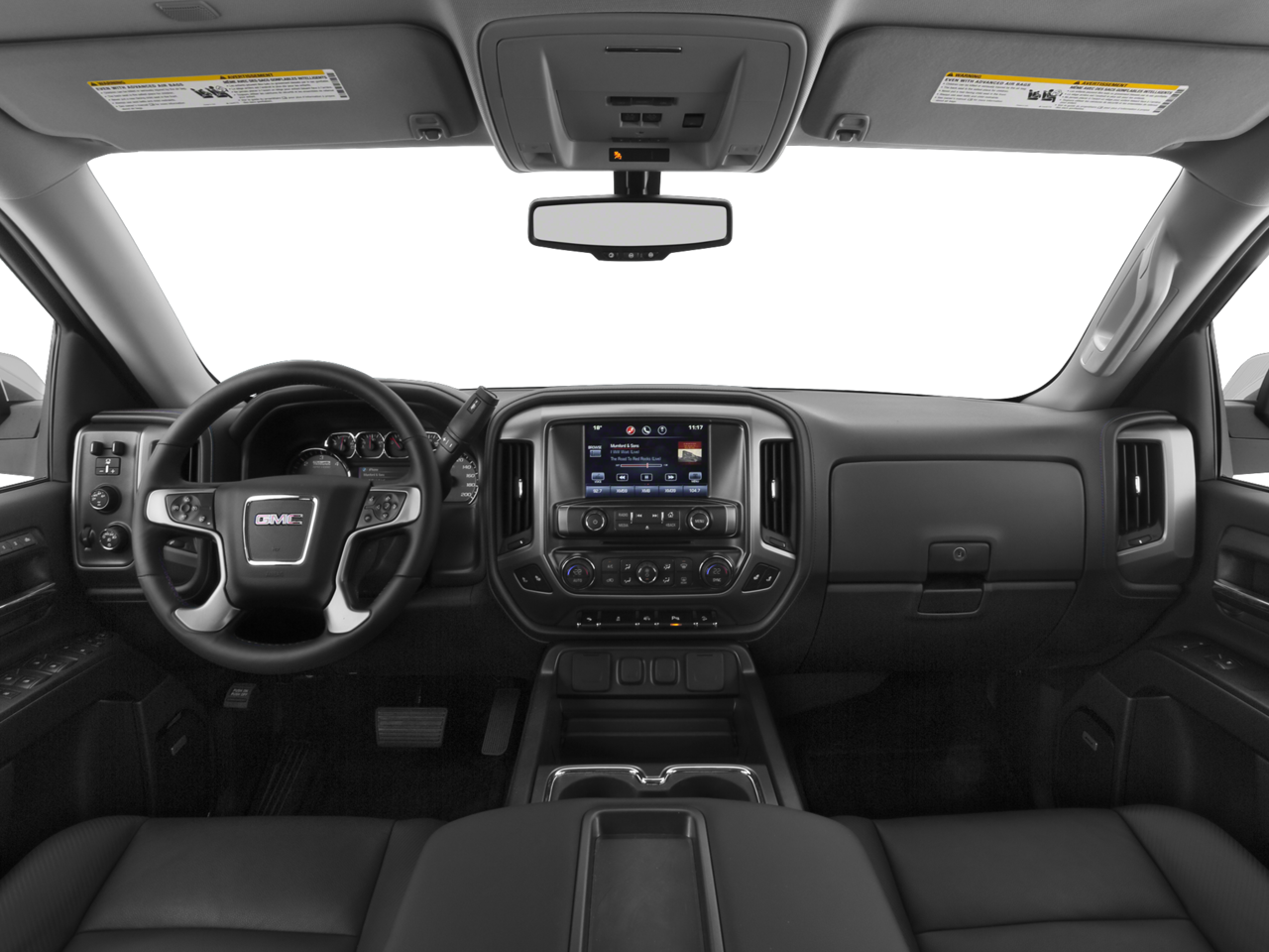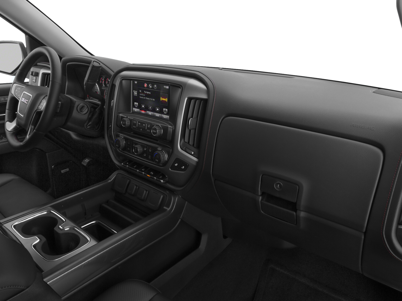 SLT CREW CAB VALUE PACKAGE includes (BVQ) 6" rectangular chrome tubular assist steps, (UQA) Bose premium audio system and (RD5) 20" x 9" polished aluminum wheels, AUDIO SYSTEM, 8" DIAGONAL COLOR TOUCH SCREEN NAVIGATION WITH INTELLILINK, AM/FM/SIRIUSXM with USB ports, auxiliary jack, SD card slot, Bluetooth® streaming audio for music and most phones, hands-free smartphone integration, Pandora Internet radio and voice-activated technology for radio and phone, SUSPENSION PACKAGE, OFF-ROAD includes Z71 chrome side front fender emblems, monotube Rancho brand shocks and (K47) air cleaner, (JHD) Hill Descent Control, (NZZ) underbody shield on 4WD models and (V76) recovery hooks on 2WD model, SEATS, FRONT FULL-FEATURE LEATHER-APPOINTED BUCKET with (KA1) heated seat cushions and seat backs. Includes 10-way power driver and front passenger seat adjusters, including 2-way power lumbar control, 2-position driver memory, adjustable head restraints, (D07) floor console and storage pockets. ENGINE, 5.3L ECOTEC3 V8 WITH ACTIVE FUEL MANAGEMENT, DIRECT INJECTION and Variable Valve Timing, includes aluminum block construction (355 hp [265 kW] @ 5600 rpm, 383 lb-ft of torque [518 Nm] @ 4100 rpm; more than 300 lb-ft of torque from 2000 to 5600 rpm) (STD), TRANSMISSION, 6-SPEED AUTOMATIC, ELECTRONICALLY CONTROLLED with overdrive and tow/haul mode. Includes Cruise Grade Braking and Powertrain Grade Braking (STD). GMC SLT with Quicksilver Metallic exterior and Jet Black interior features a 8 Cylinder Engine with 355 HP at 5600 RPM*.