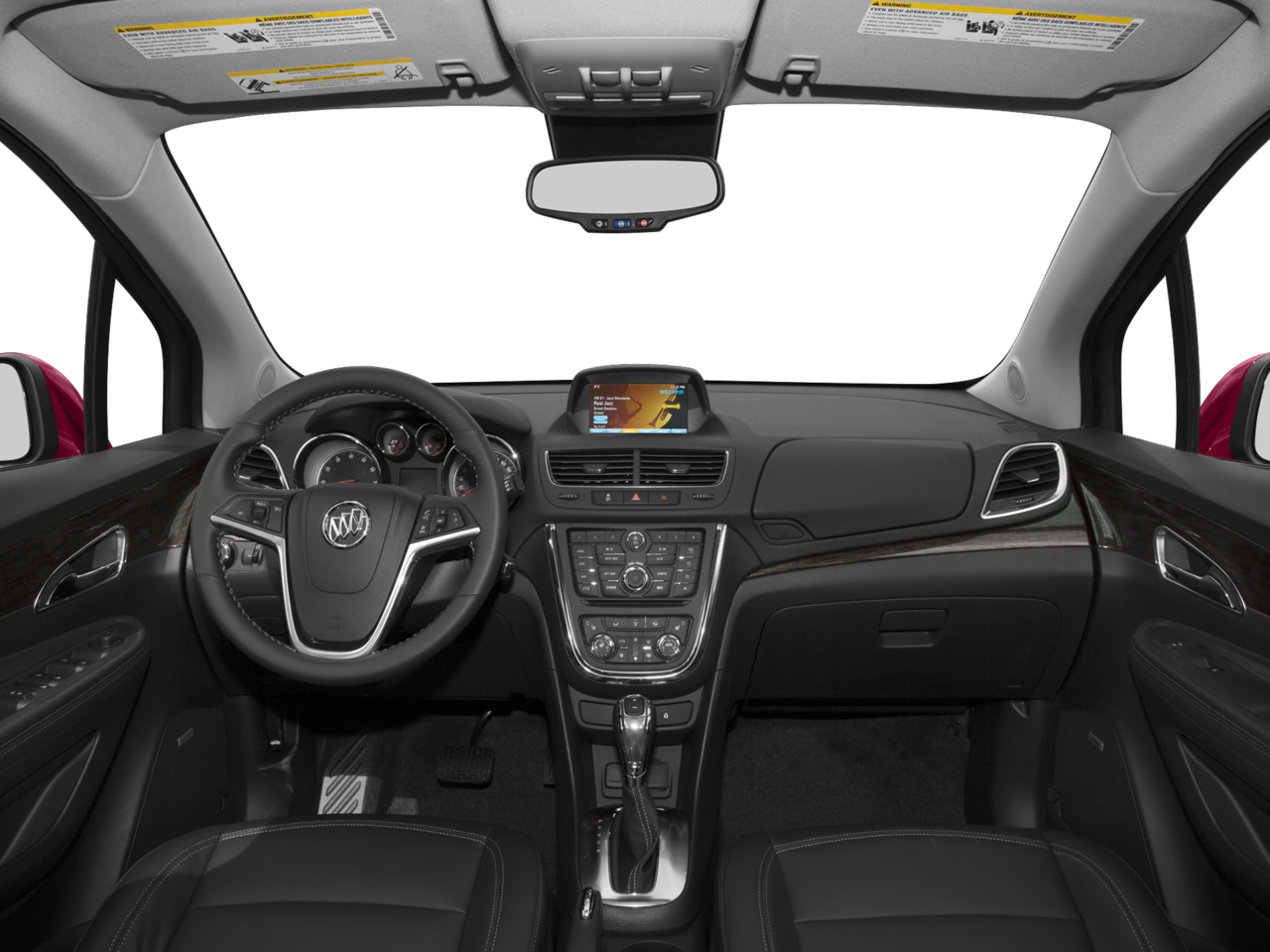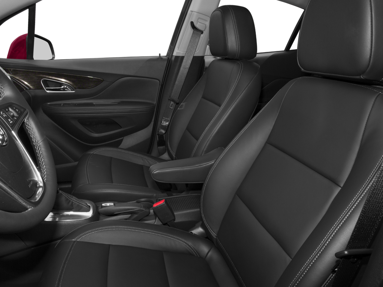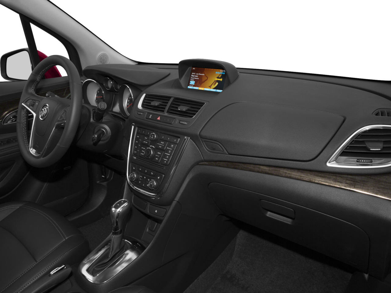 LPO, BUICK INTERIOR PROTECTION PACKAGE includes the following dealer installed LPO accessories: (VAV) First and second row all-weather floor mats and (VLI) Color-keyed carpeted cargo mat, ENGINE, ECOTEC TURBO 1.4L VARIABLE VALVE TIMING DOHC 4-CYLINDER SEQUENTIAL MFI (138 hp [102.9 kW] @ 4900 rpm, 148 lb-ft of torque [199.8 N-m] @ 1850 rpm) (STD), TRANSMISSION, 6-SPEED AUTOMATIC, ELECTRONICALLY-CONTROLLED WITH OVERDRIVE includes Driver Shift Control (STD), AUDIO SYSTEM, AM/FM/SIRIUSXM STEREO WITH MP3 CD PLAYER IntelliLink with 7" diagonal color LCD display, USB port, Radio Data System (RDS) and auxiliary input jack (STD). Buick Encore with Winterberry Red Metallic exterior and Ebony interior features a 4 Cylinder Engine with 138 HP at 4900 RPM*.